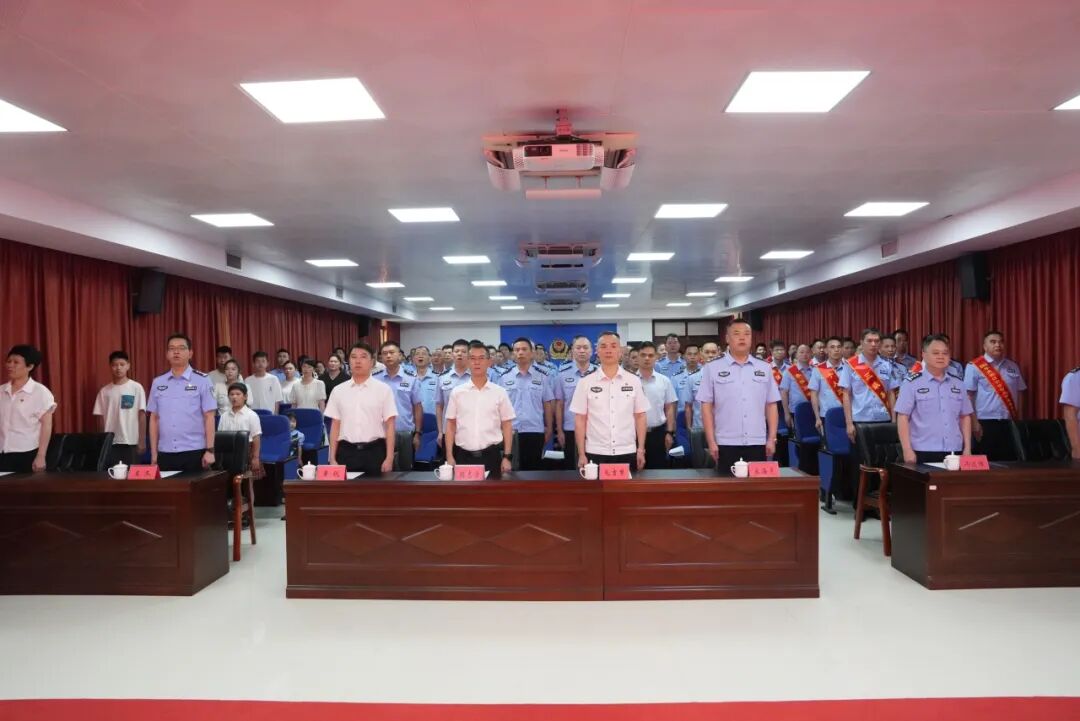 為進一步凝聚警心、鼓舞士氣,傳承市公安局“英雄文化”,增強民輔警的職業(yè)榮譽感和使命感,5月25日上午,陽東分局舉行2025年第一季度榮譽儀式。區(qū)委副書記、區(qū)長胡志方,市公安局黨委委員、常務(wù)副督察長毛吉繁,區(qū)委常委、政法委書記黃銳,副區(qū)長、市公安局陽東分局黨委書記、局長宋海亮出席榮譽儀式。 儀式在莊嚴的國歌聲中拉開序幕。隨后,2025年以來榮立集體三等功、個人三等功、輔警三級嘉獎以及榮獲“2024年度陽江市信訪工作表現(xiàn)突出個人”的先進集體和個人輪番登臺亮相。獲評第一季度“所隊長之星”“法制員之星”“破案之星”“服務(wù)之星”“創(chuàng)優(yōu)之星”“輔警之星”的優(yōu)秀民輔警們分別登上領(lǐng)獎臺,接受表彰。 宋海亮在致辭中指出,今年以來,在市公安局黨委和區(qū)委、區(qū)政府的堅強領(lǐng)導(dǎo)下,全區(qū)公安機關(guān)初心如磬、奮楫篤行,牢牢守住政治安全防線,縱深推進重點關(guān)注問題專項整治,嚴厲打擊各類突出違法犯罪,刑事治安警情、刑事立案數(shù)均同比下降,全區(qū)社會治安持續(xù)保持穩(wěn)中向好。 宋海亮強調(diào),在新的征程上,全區(qū)公安機關(guān)要團結(jié)一心、上下齊心,以更加昂揚的斗志、更加飽滿的熱情、更加扎實的作風(fēng)投入各項公安工作,力爭再創(chuàng)佳績、再立新功,為陽東公安工作高質(zhì)量發(fā)展體現(xiàn)新?lián)敗⒆鞒鲂仑暙I! 分局在家局領(lǐng)導(dǎo),分局各派出所、各單位主要領(lǐng)導(dǎo)、民輔警代表以及警屬代表參加儀式。