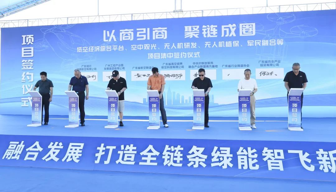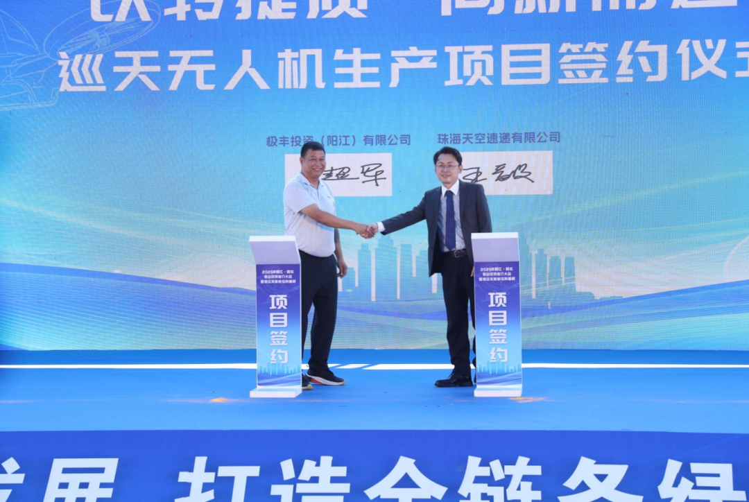 活動現場,相關領導嘉賓共同推桿,正式宣布“2025年陽江·陽東低空經濟推介大會暨低空文旅航空科普展活動”啟動。接著,為高空視界跳傘基地授予航空飛行營地牌匾,并進行項目簽約儀式。此次簽約涵蓋SAR雷達生產、無人機研發制造、低空經濟應用場景合作等多個領域,為陽東低空經濟產業的高質量發展注入了強勁動力。