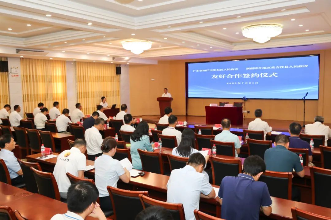 陽江市委常委、常務副市長黃寧,陽東區委書記李坤,區人大常委會主任洪濤,區領導陳華清,英吉沙縣委書記李國慶,縣領導褚思鵬、吳敵出席簽約儀式。區委副書記、區長胡志方主持儀式。
