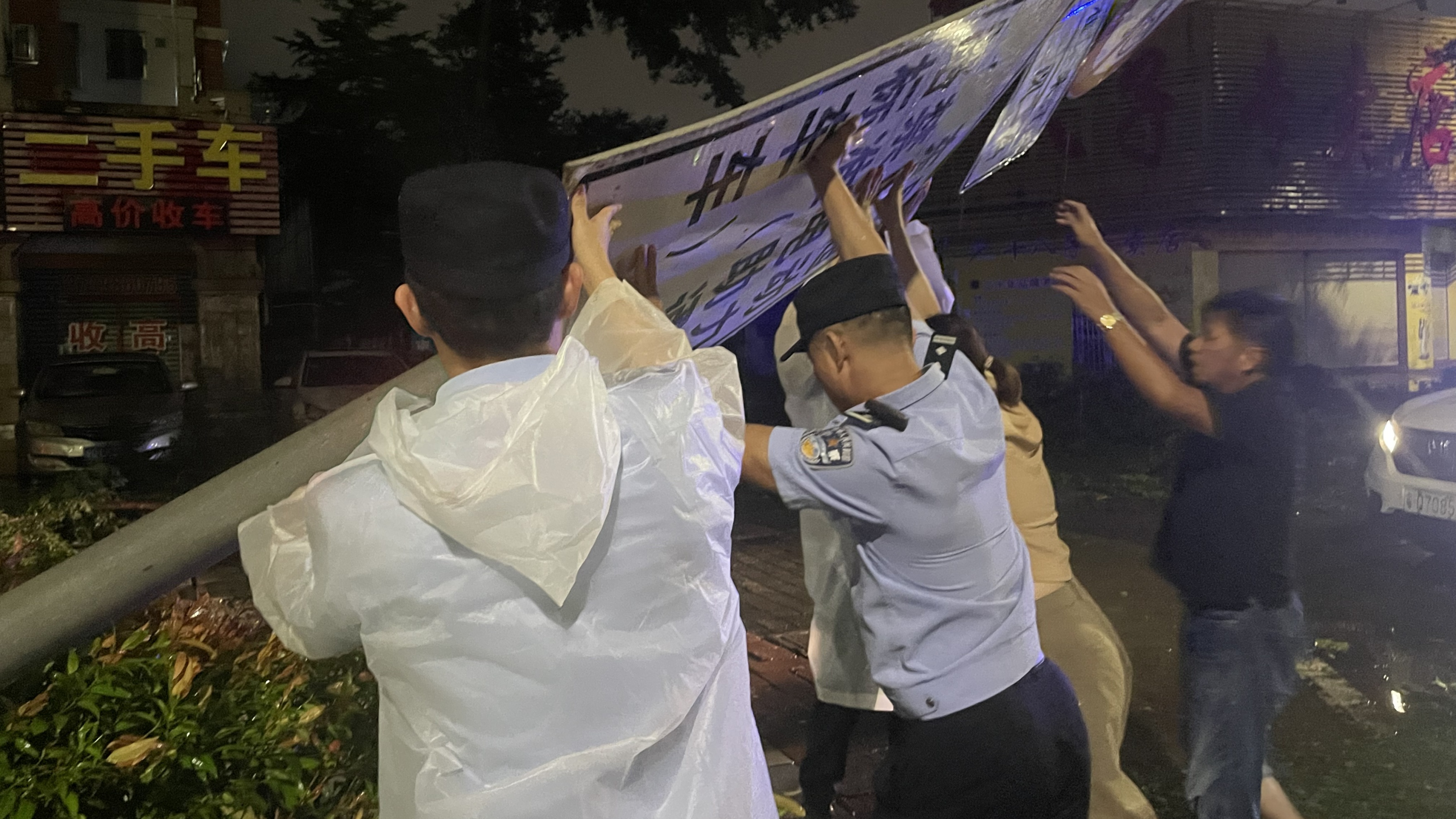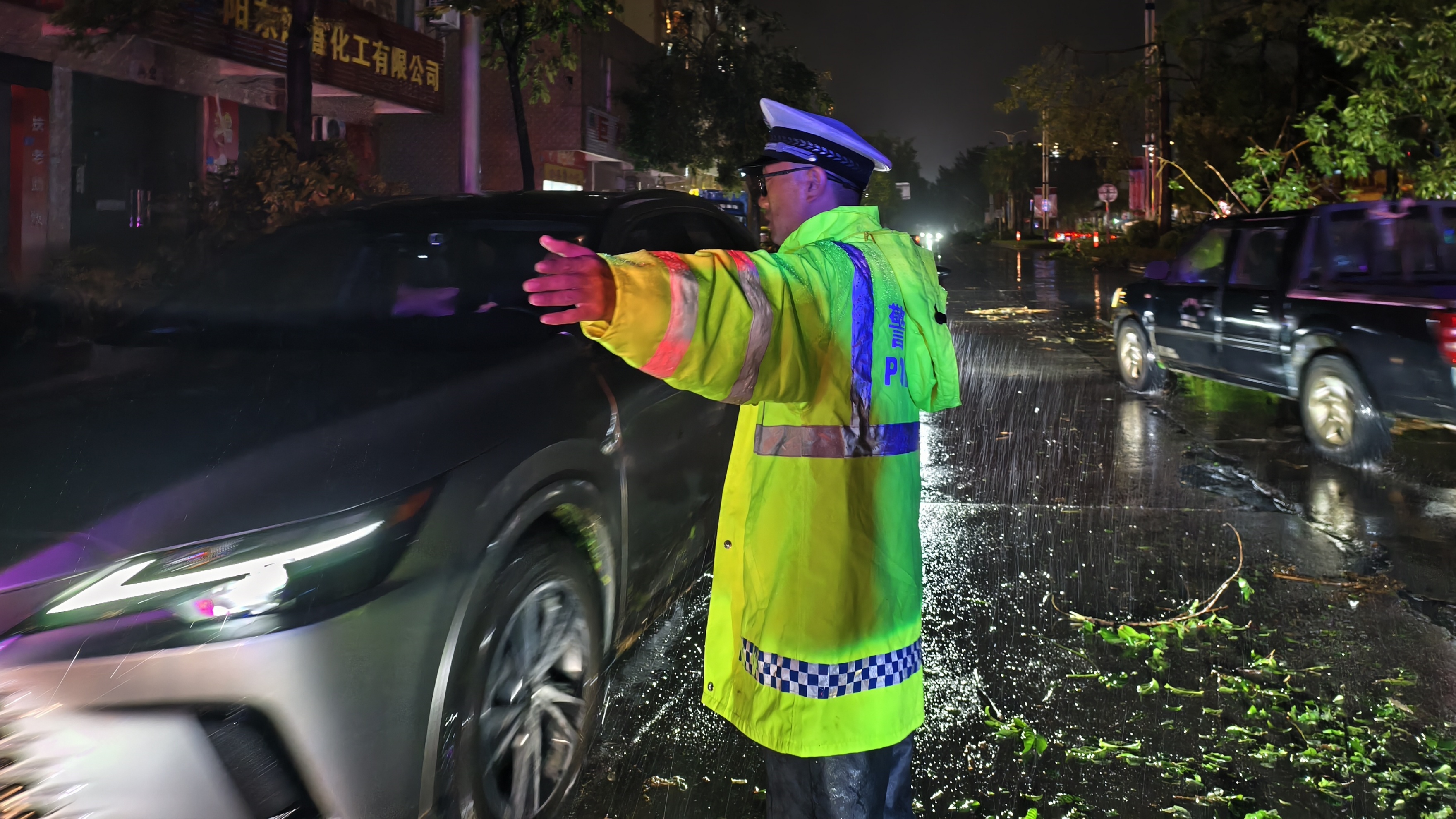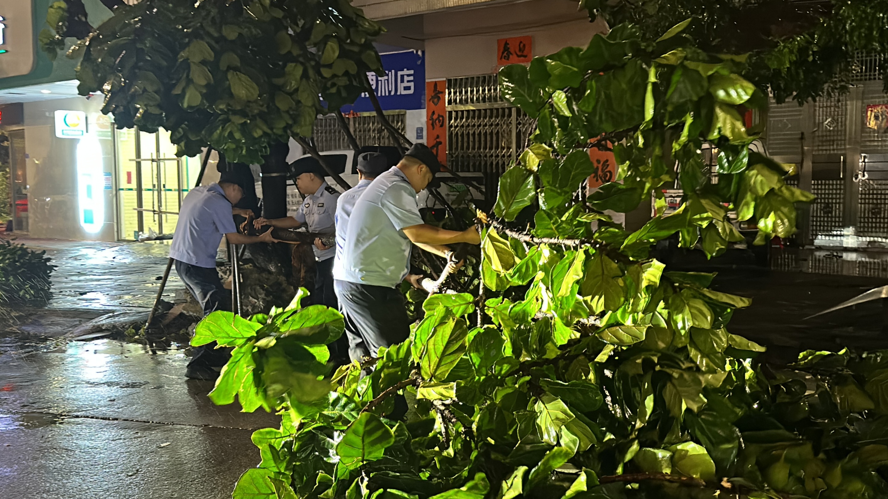【安全+滿意】臺風過境,守護不停:陽東公安雨中清障保暢通