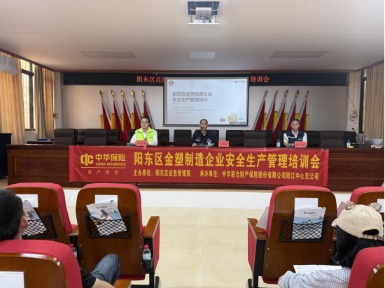 為深入推進安全生產治本攻堅三年行動和工貿行業“2025隱患排查治理年”行動,加強全區工貿行業安全生產管理能力,2025年10月21日,由陽東區應急管理局主辦,中華財險陽江中心支公司承辦的“陽東區金塑制造企業安全生產管理培訓會”在陽東區北慣鎮人民政府成功舉行。