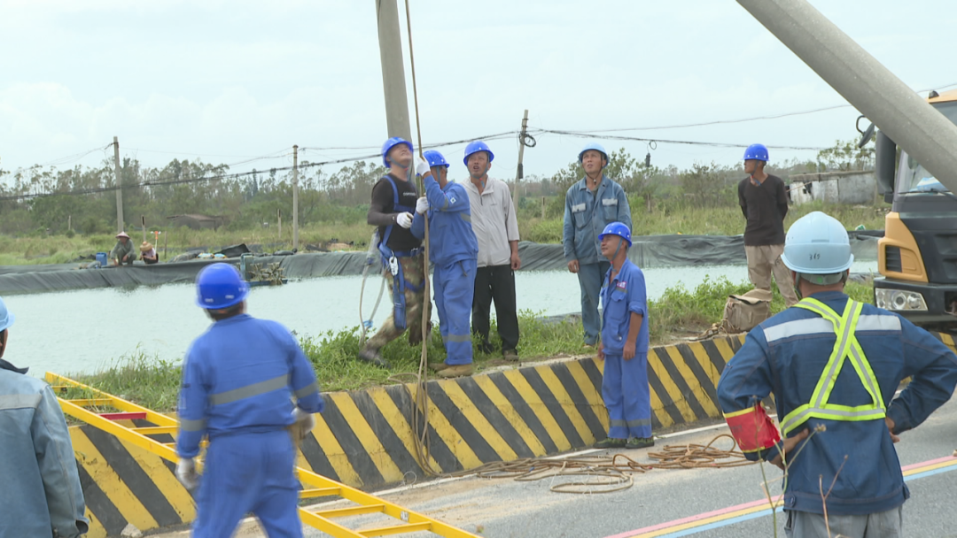 南方電網廣東陽江陽東供電局大溝供電所所長 林進堅: 大溝鎮在24日15時至17時臺風登陸期間,這里的高壓線路全部停電了,當時整個大溝鎮片區一片黑。所以在17時左右,風力小一點我們供電所組織成立黨員先鋒突擊隊,十幾分鐘內就將大溝鎮片區重要區域比如鎮政府、供電所包括鎮區內所有的用戶恢復供電。