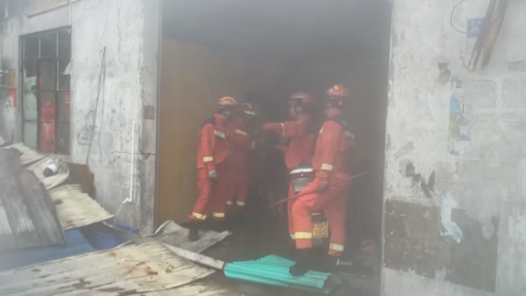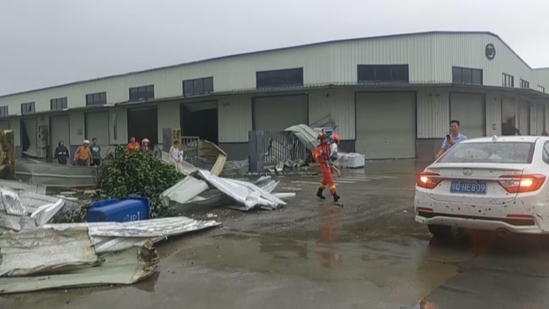 16點16分,在接到金田四路29號有小孩需要轉移警情后,救援指戰員到場后發現被困人員在工廠內,廠房頂棚被掀起,通過救援,成功轉移6人到達安全區域(2名大人、4名小孩)。