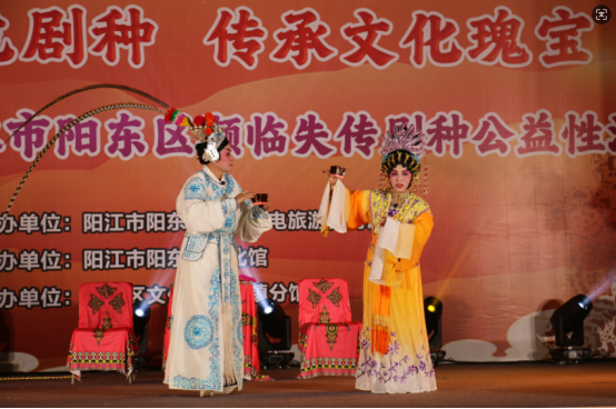為全面貫徹落實黨的二十大和二十屆三中全會精神,保護和傳承好我國的傳統戲劇文化,讓瀕臨失傳的劇種長新芽、煥新彩,得到更好的傳承和發展,由陽江市陽東區文化廣電旅游體育局主辦,陽江市陽東區文化館承辦,陽江市陽東區文化館各鄉鎮分館協辦的“守護瀕危劇種 傳承文化瑰寶”——2025年陽東區瀕臨失傳劇種公益性演出活動在陽江市十八子四合院、雅韶鎮笏朝村綜合文化活動中心、東平鎮紅星碼頭漁歌舞臺舉行。