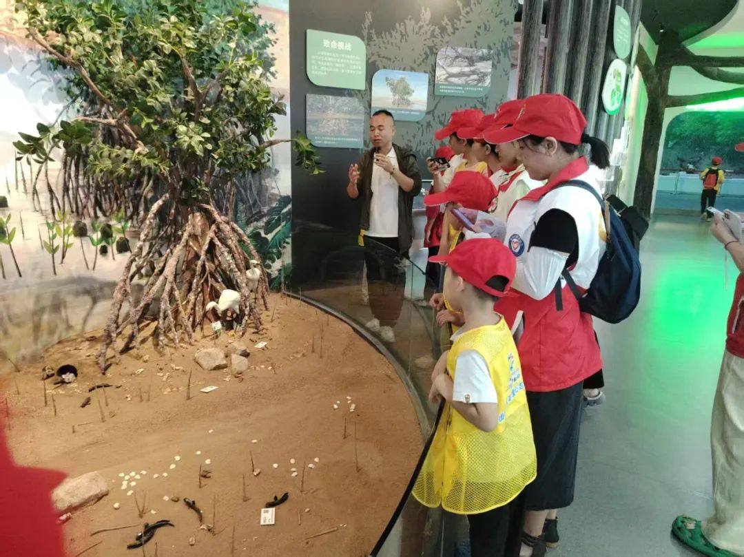 7月6日,活動轉場至壽長河紅樹林國家濕地公園。工作人員向志愿者們講解了紅樹林的相關知識。紅樹林不僅能防風消浪、凈化海水,還為魚蝦鳥類提供了棲息之所,素有“海上森林”“海洋綠肺”“海洋衛士”之稱,在凈化海水、調節氣候、保護海岸、防災減災、維護生物多樣性、維護生態安全等方面作用顯著,是海洋生態文明建設的重要標志。工作人員還介紹,近年來我國大力推進紅樹林保護和修復,成為世界上少數紅樹林面積凈增加的國家之一,廣東在全面加強紅樹林保護修復工作中也取得了可喜成績,讓大家對生態保護的成果倍感自豪。