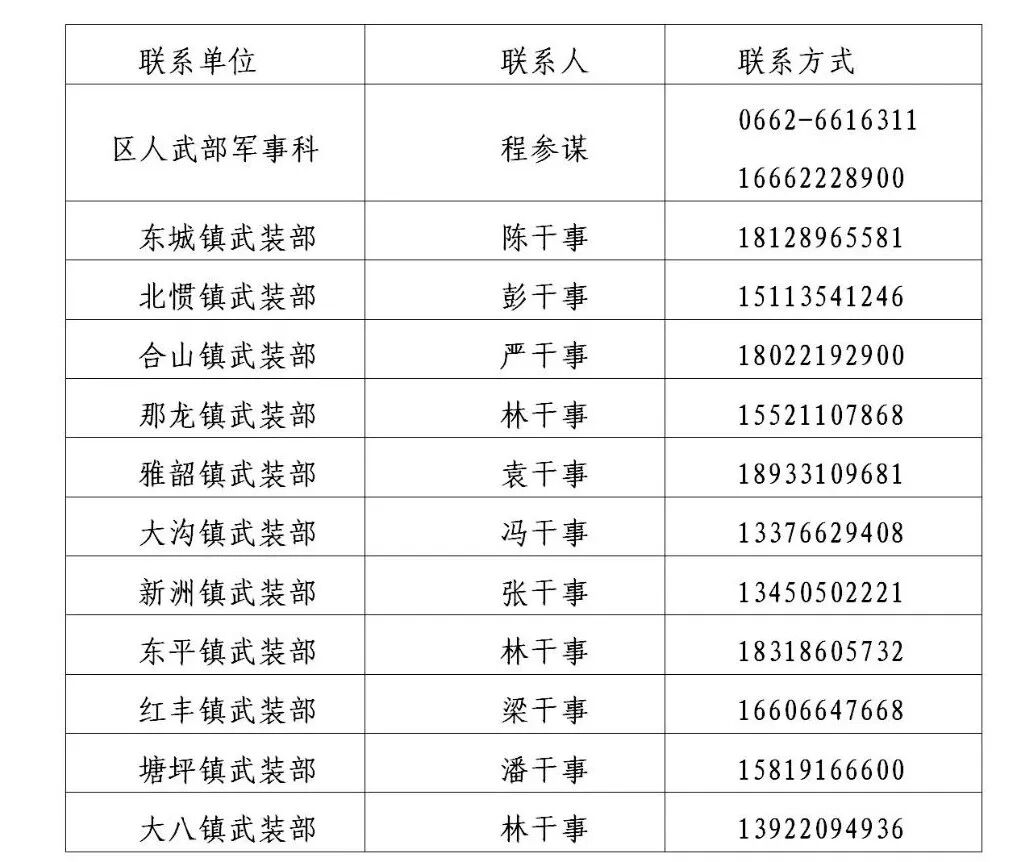 有意愿的公民和企業事業單位、社會組織人員,可聯系所屬鄉鎮武裝部及單位武裝工作負責人現場報名。
