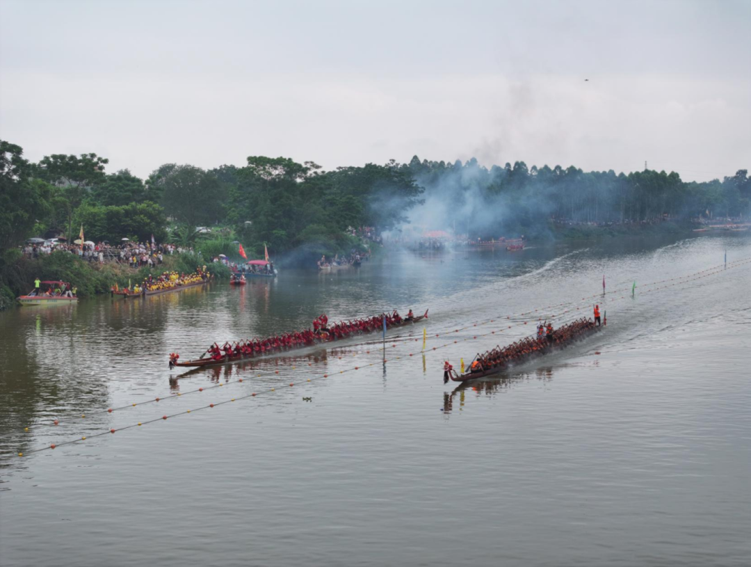 決賽當日,河岸兩旁早已是人頭攢動、人聲鼎沸,熱情高漲的觀眾們早早地就擠滿了河岸兩側,大家都翹首以盼這場精彩賽事的開始。隨著一聲清脆的發令槍響,一艘艘龍舟瞬間如離弦之箭,破浪而出。只見選手們身著代表各隊的隊服,整齊劃一地揮動著船槳,動作剛勁有力。船頭的鼓手奮力擊鼓,激昂的鼓點聲與選手們的吶喊聲相互交織,響徹整個河面。