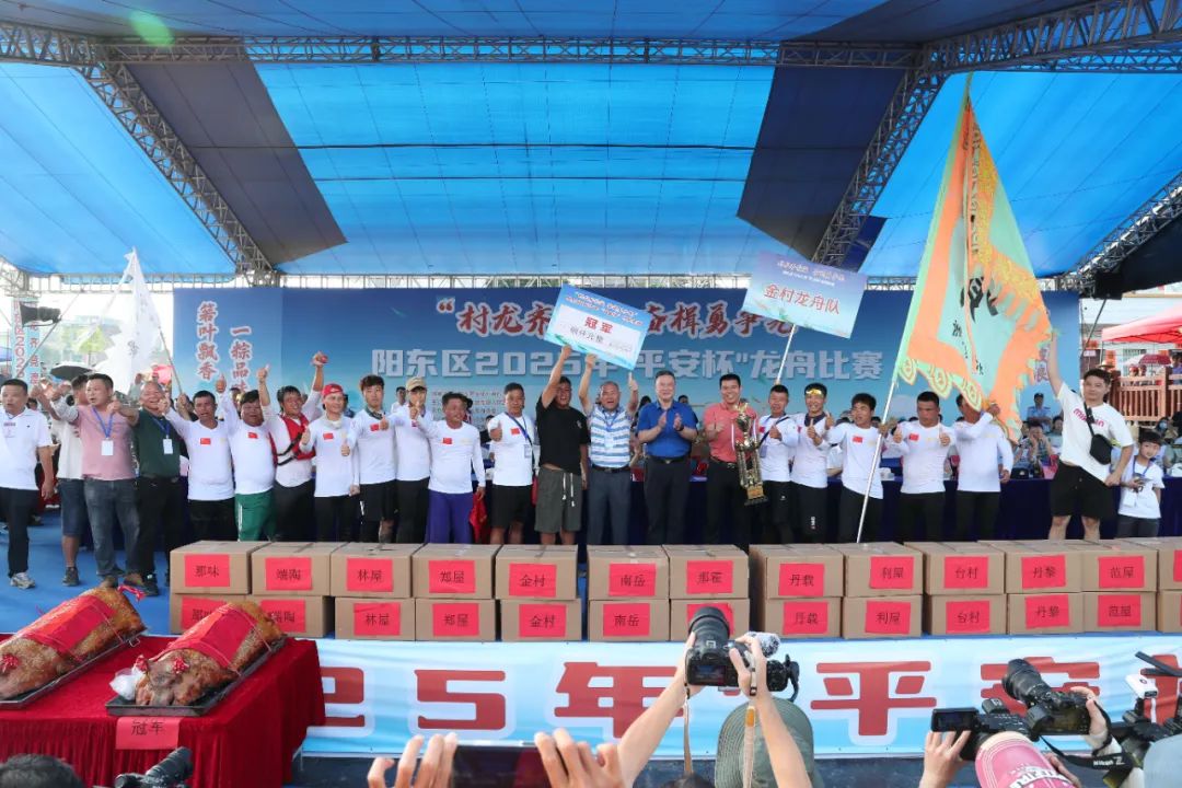 “太高興了,為了這次比賽我們也付出了很多,訓練了很長時間。去年、今年都獲得冠軍,大家都很開心,感覺一切付出都是值得的。”一名金村壯丁說。 “此刻我們龍舟隊壯丁心情非常激動,我們付出了汗水還是值得的,特別是我們村黨委書記、村委會主任每天給我們打氣,強調紀律、休息安全,最終我們取得了第一。”另一名金村壯丁說。 “我們這次奪冠離不開每位壯丁的辛苦努力,我們在比賽前一個月就開始訓練。也感謝我們的教練每天都嚴格要求壯丁,所以我們這次的冠軍得來不易。還有后勤人員也做了很多服務工作,讓我們壯丁吃得好、吃得飽,比賽時有力氣。”金村村黨委書記、村委會主任、金村龍舟隊負責人項雙良說。 據了解,本次傳統龍舟大賽不僅是一場體育競技,更是對傳統文化的傳承與弘揚。龍舟賽作為我國歷史悠久的民俗活動,蘊含著深厚的文化底蘊。賽事的舉辦,不僅為龍舟愛好者提供了展示實力的平臺,也吸引了更多人關注并參與到這項傳統運動中來。